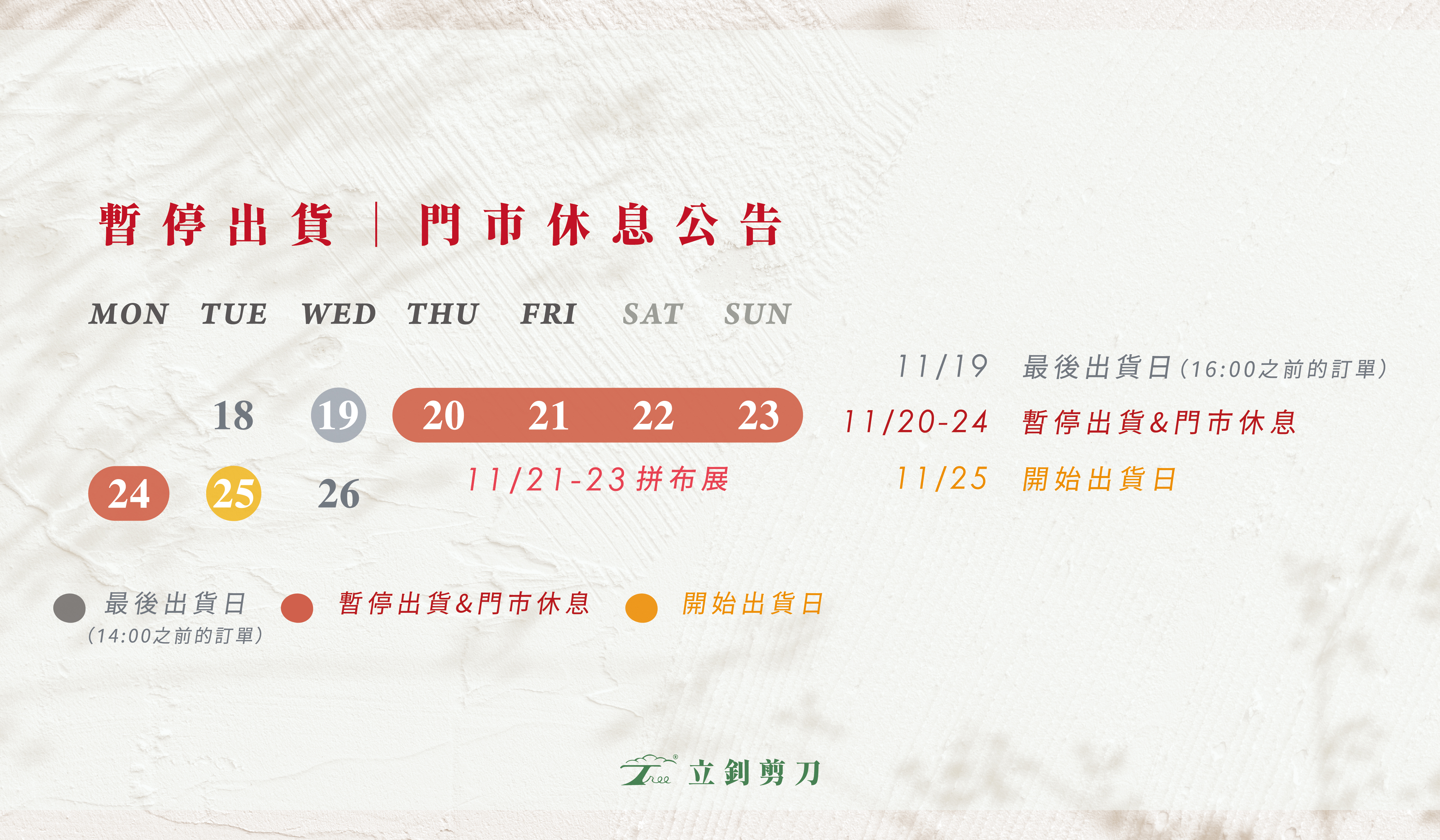 11/21~11/23拼布展,11/20~11/24 暫停出貨
